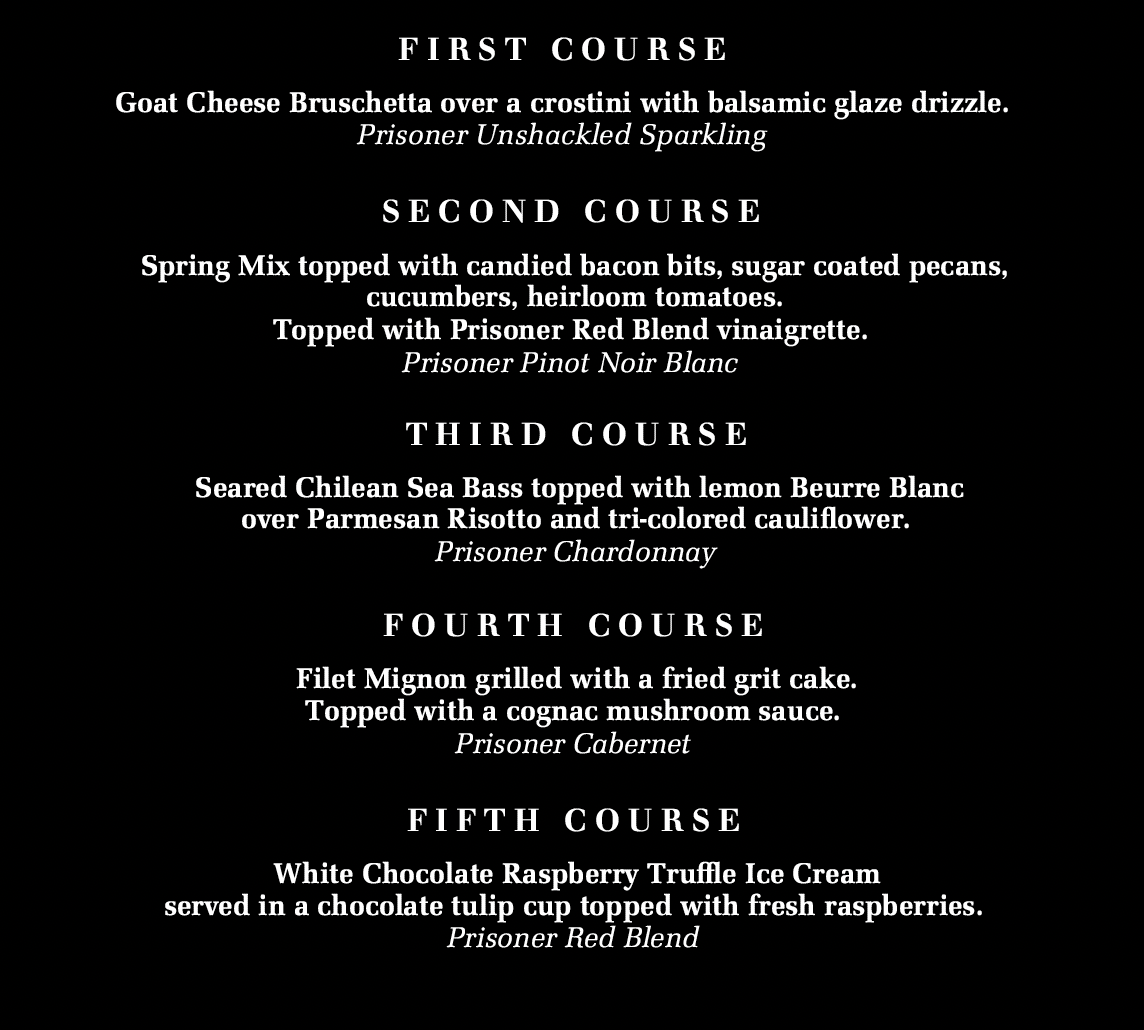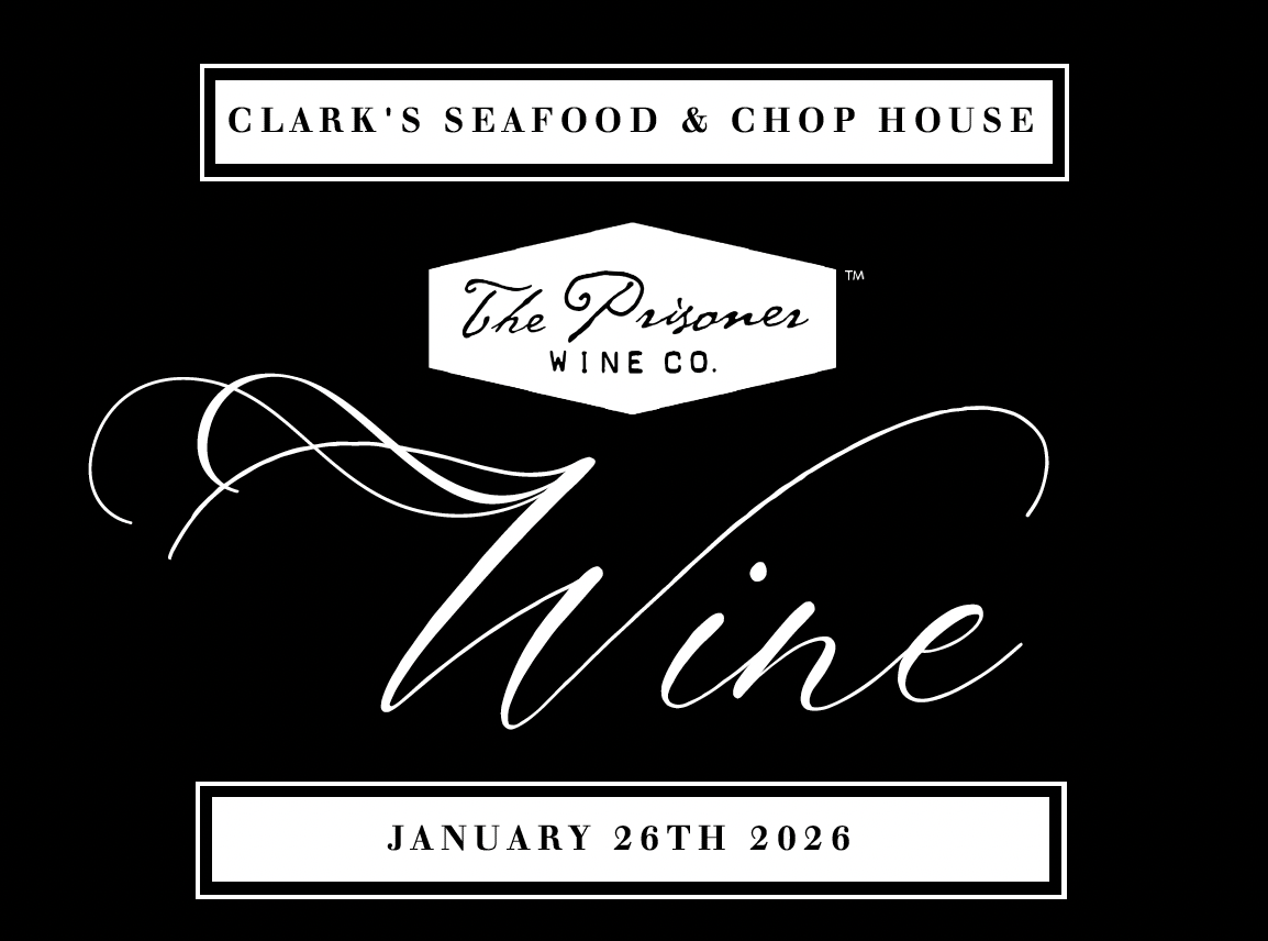 Join us at Clark’s for The Prisoner Wine Co. Dinner on Monday, January 26th at 5:30pm! This dinner has limited seating. Ticket price (with tax and gratuity included) is $149 each.